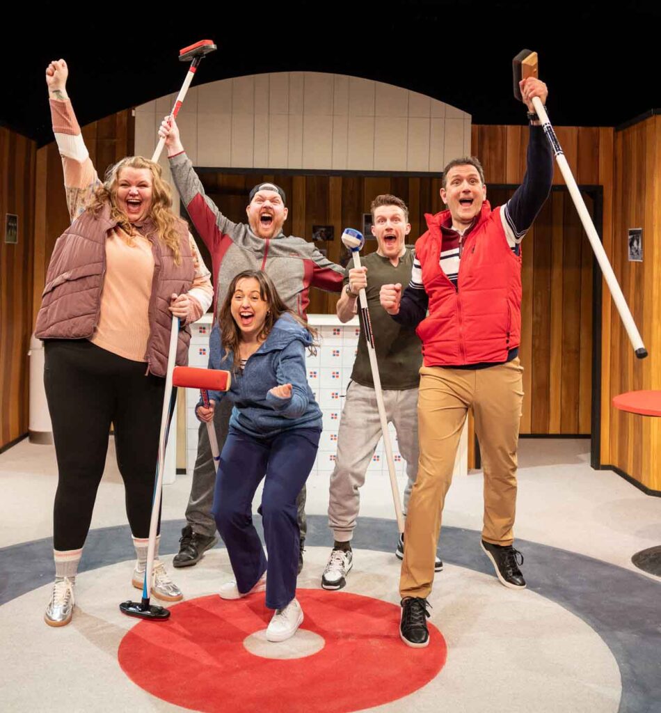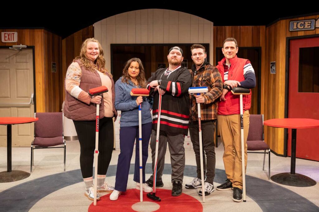 Brent Gill is great fun as Terry playing him with a blustery male energy that masks his true feelings and desires. Nathan Schmitt portrays his brother Bill as a man clearly with more than curling on his mind as he awkwardly tries to reconnect with his ex-wife Sandy. Sarah Joylyn Irwin plays Sandy as a woman debating which path to follow as she reviews her life choices and considers her future options. Hayley Rosenau brings a mischievous energy and sparkle to Darlene who must rise to the challenge as the Didsbury team comes together for the final game against Olds. And Matthew Mooney is a charming, friendly, take life as it comes presence who’s just happy to be a part of the team.